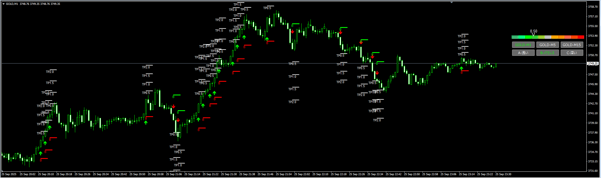 - 3つを1つに統合:GOLD Meter+GOLD-M1サイン+GOLD-M5/M15サイン